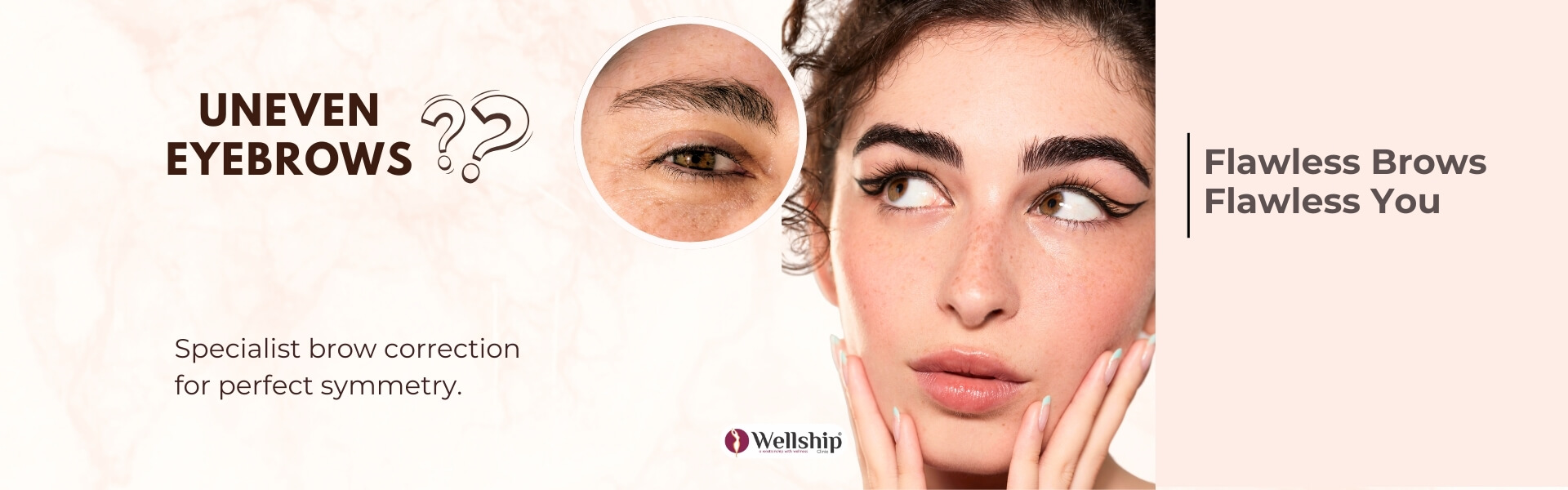 Wellship Clinic offers advanced Uneven Eyebrow Treatments in South Delhi, CR Park, Ghaziabad, Noida, Gurgaon, Greater Noida, NCR, and Punjab. Looking for the best eyebrow correction clinic near you? Trust Wellship for natural, safe, and long-lasting results.